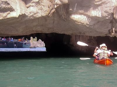 The Syrena Cruises anchors at Hang Trong. Hang Trong, or Drum Cave, refers to a nearby cave that earned its name as a result of the sound made as the wind blows through its stalagmites and stalactites.